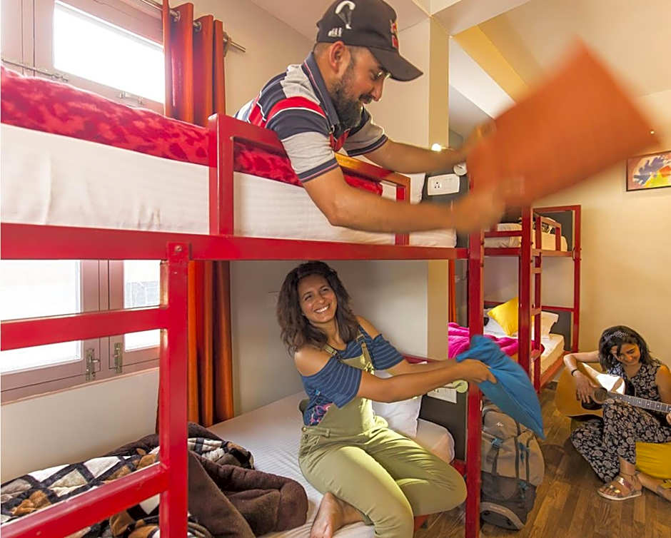 This bed in dormitory has a balcony, seating area and tile/marble floor.
